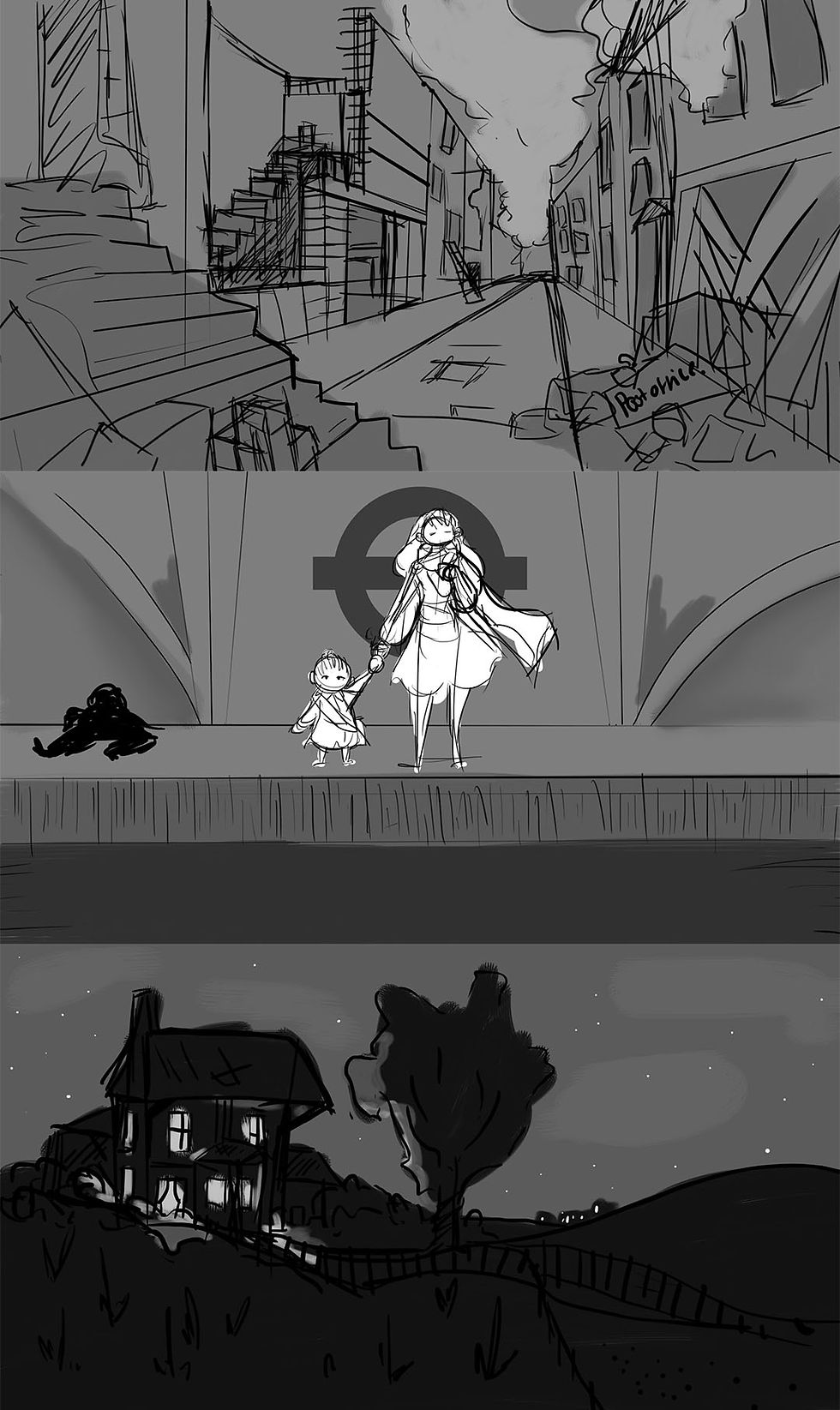 Environmental sketchesJan 23, 20181 min read Preliminary sketches for some environments in my animatic.Im not very good with perspective so this is a good chance to practise.